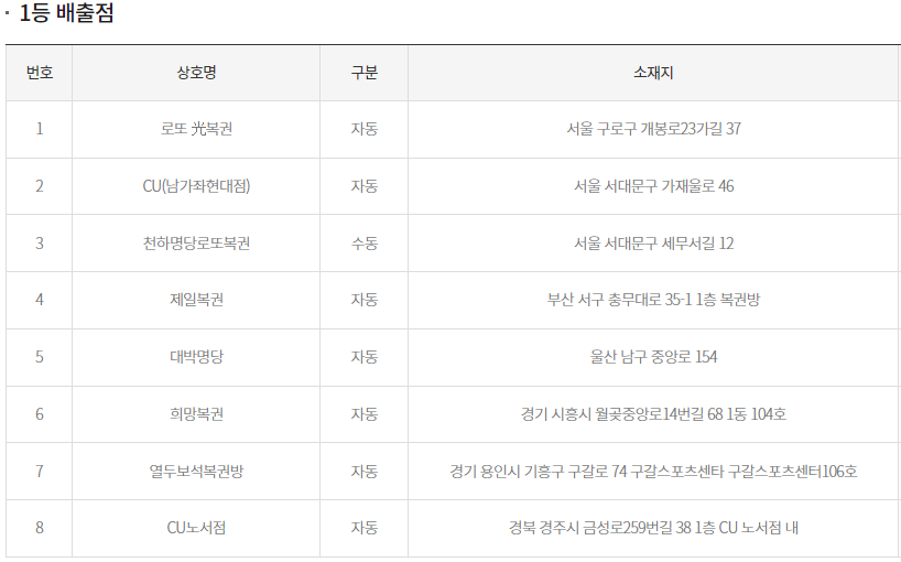 2022.06.11 - [생활정보] - 로또복권 1019회 당첨번호 및 로또645 1등 당첨판매점 지역