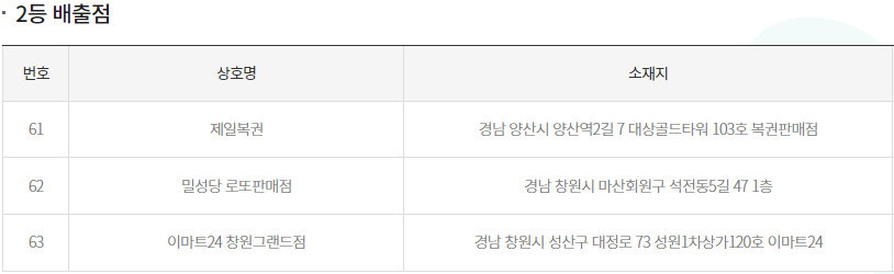 62. 밀성당 로또판매점 경남 창원시 마산회원구 석전동5길 47 1층