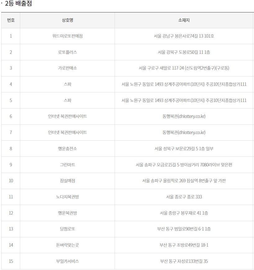 로또2등 당첨판매점 당첨지역
