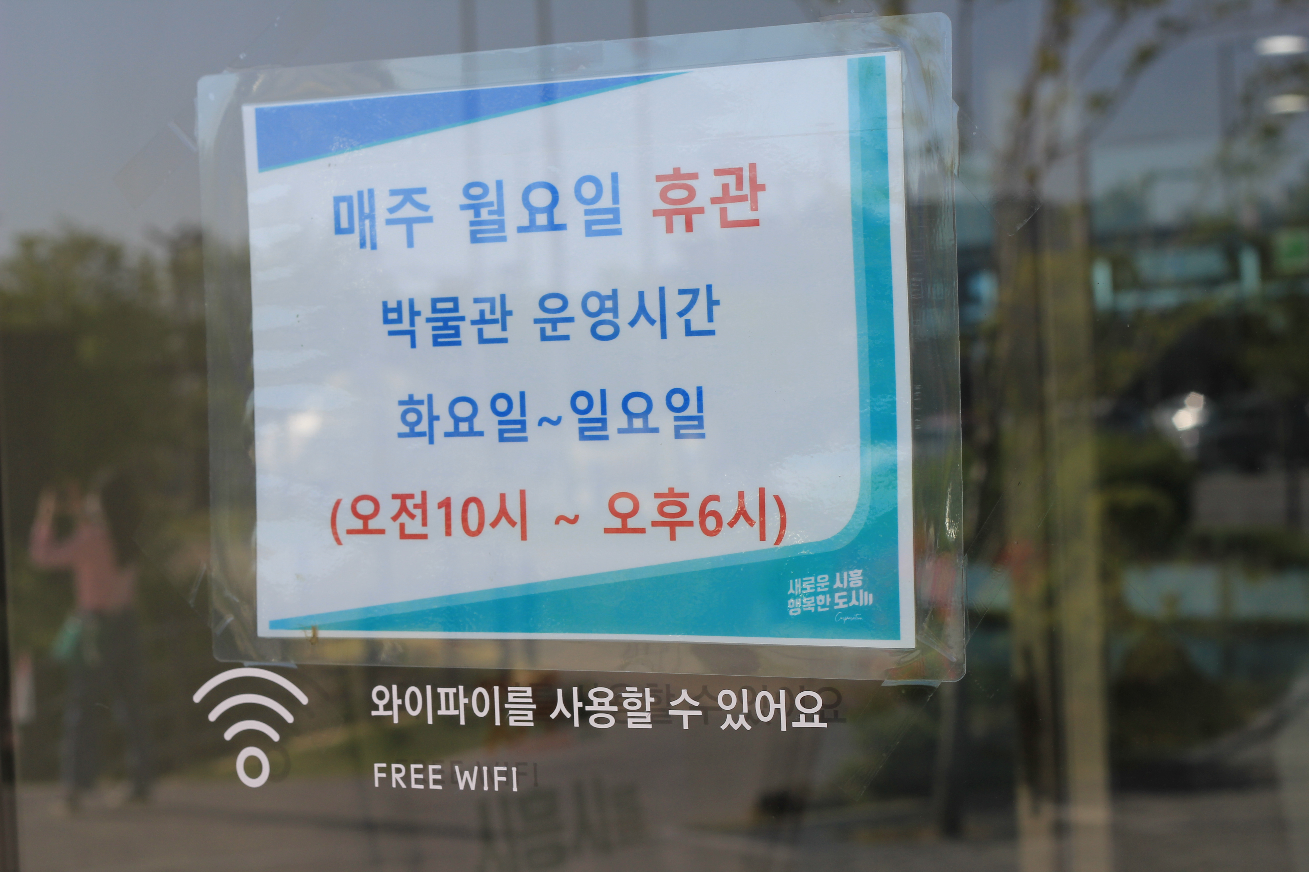 입장권을 사기 위해 주차무인정산기 주변을 둘러보다 안내데스크에 물어보니 무료관람이라고 한다. 다만 주차요금은 입차후 1시간은 무료이고 최초 30분까지 500원, 10분당 100원이 발생하며 1일 최대 요금은 3천 원이다. 장애인과 국가유공자 등은 면제 대상이다. 관람시간은 10:00 ~ 18:00로 월요일은 휴관이다.