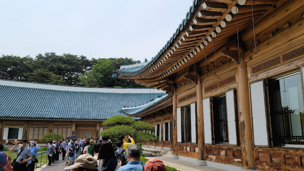 본관을 배경으로 사진을 찍으려는 관람객으로 긴 줄이 형성되어 있다. 기다리기에는 점차 지칠 타이밍이어서 흔적 남기 듯한 사진만 찍기로 한다. 본관 앞 대정원에는 22일 27년 만에 KBS 열린음악회 개최를 준비하느라고 분주하다.