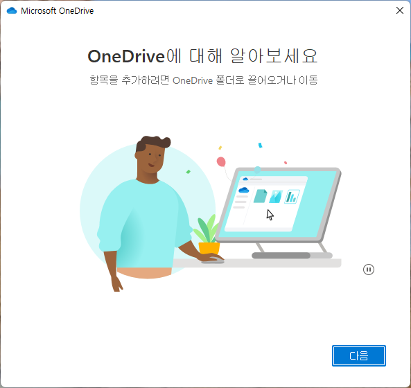 해제하고 나면 잠시 후 OneDrive설치 화면에 로그인하는 과정 화면이 나온다.