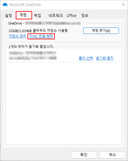 원드라이브 동기화 폴더 경로변경