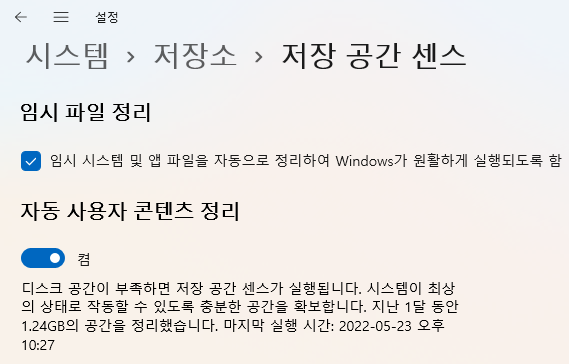 저장공간센스 가동