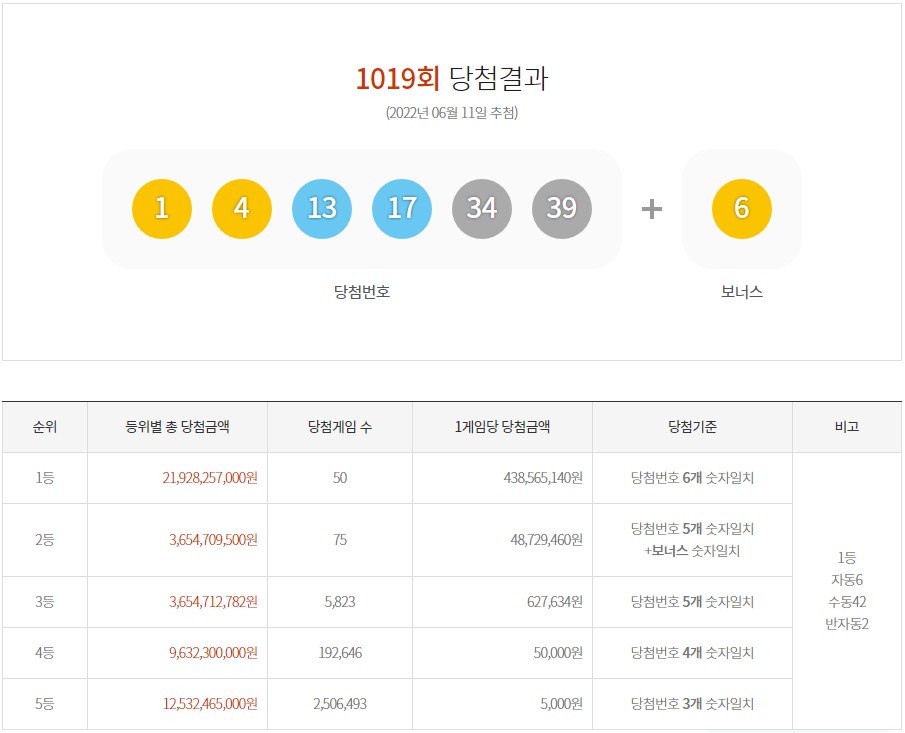 2022.06.04 - [생활정보] - 로또복권 1018회 당첨번호 및 로또645 1등 당첨 판매점 지역