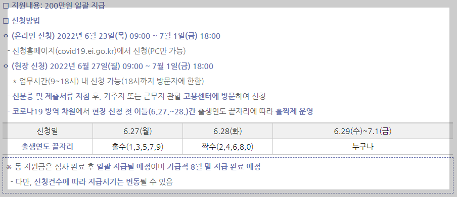 * 다만, 현재 이의신청 심사 중으로 이의신청 인용자 및 지원금 이체 시 오류가 발생한 일부에 대해서는 추가 확인을 거쳐 7월 중 지급 예정