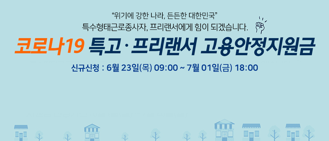 6월 23일(목) 9시부터 7월 1일(금) 18시까지 신청 누리집(covid19.ei.go.kr, PC로만 접속 가능)에서 "6차 긴급고용안정 지원금" 신규 신청을 받는다고 고용노동부가 밝힌 이번 신청은 1·2·3·4·5차 긴급고용안정지원금 중 한 번도 지원받지 않은 특수형태근로종사자(이하,‘특고’), 프리랜서 가운데 ‘21년 10월~11월 중 고용보험(근로자) 미가입자를 대상으로 한다.