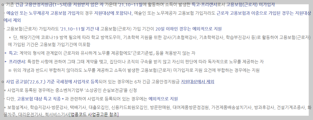 6차 고용안정지원금 제외대상