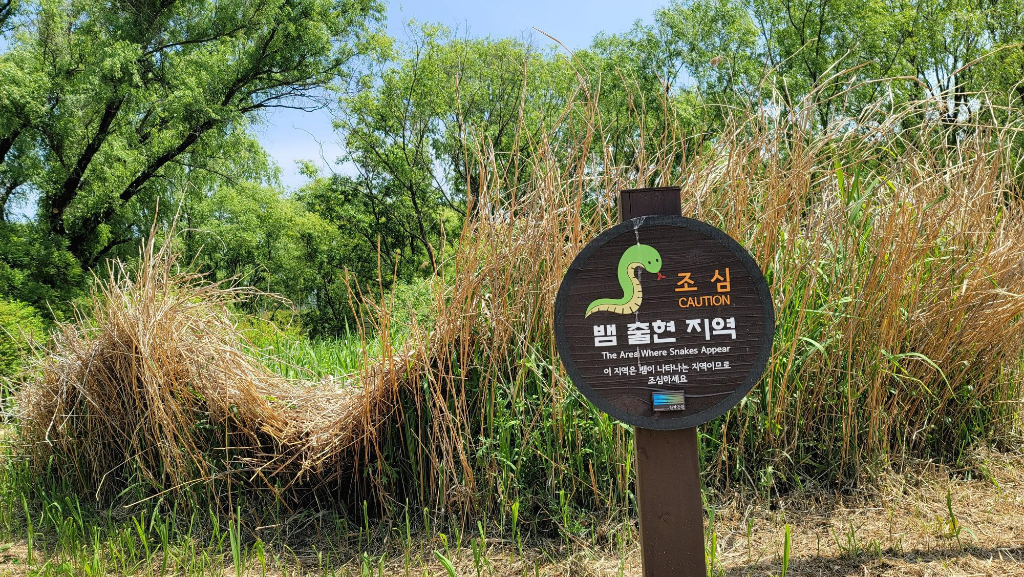 버드나무가 늘어서 있는 담수지와 저습지는 밀물일 때는 물이 차있고 썰물일 때는 물이 빠져 뻘이 드러난다. 먹이를 기다리는 왜가리와 운이 좋으면 딱다구리도 만날 수 있다고 하는데 한낮 27도를 오르내리는 날씨 때문인지 볼 수가 없다.