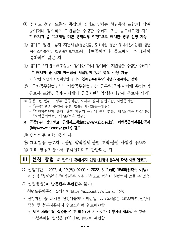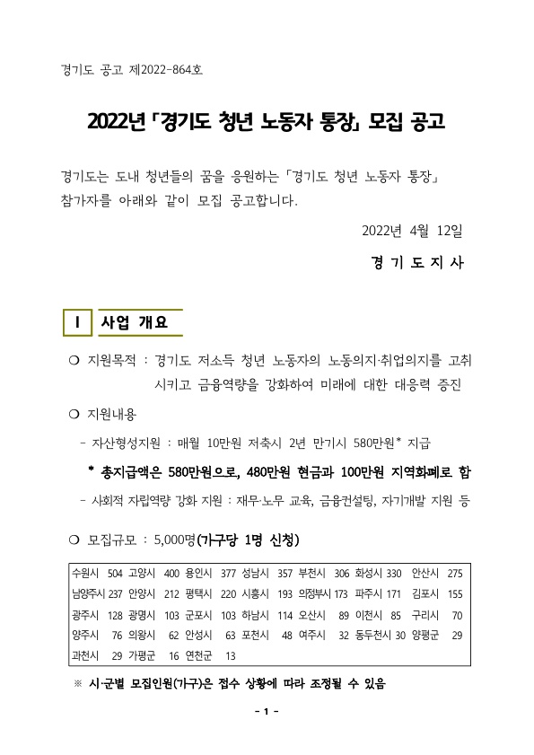 지원 목적 : 경기도 저소득 청년 노동자의 노동 의지·취업의지를 고취시키고 금융역량을 강화하여 미래에 대한 대응력 증진