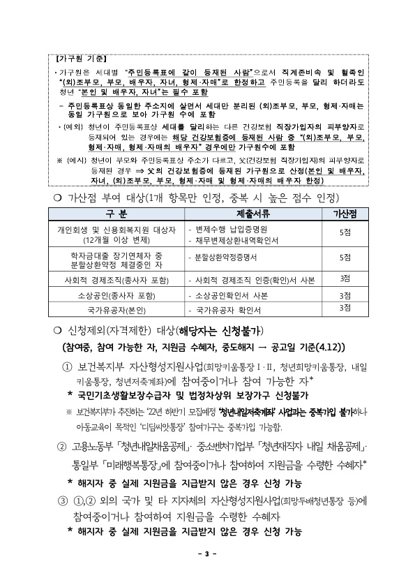 ① (연 령) 공고일 기준 만18세 이상 ~ 만 34세* 이하 청년