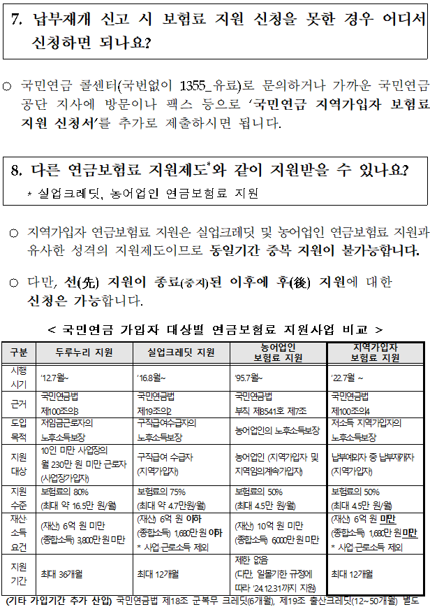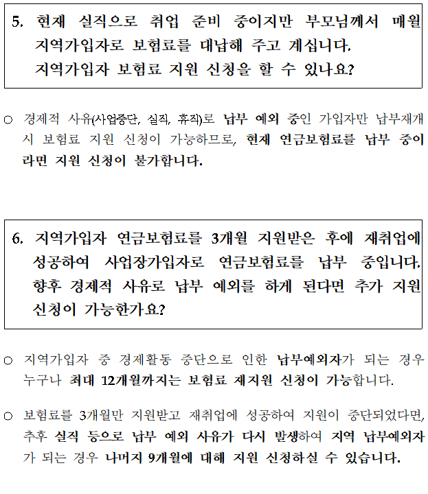 저소득 지역가입자 연금보험료 지원사업 자주 하는 질문 |