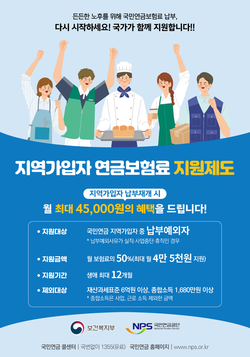 저소득 지역가입자 연금보험료 지원사업 홍보 포스터 |