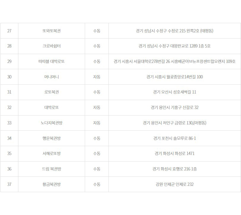 27. 또와또복권 / 수동 / 경기 성남시 수정구 수정로 215 왼쪽2호 (태평동)