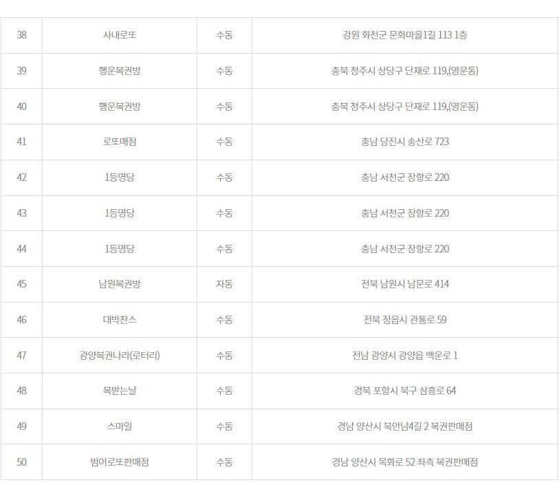40. 행운복권방 / 수동 / 충북 청주시 상당구 단재로 119,(영운동)