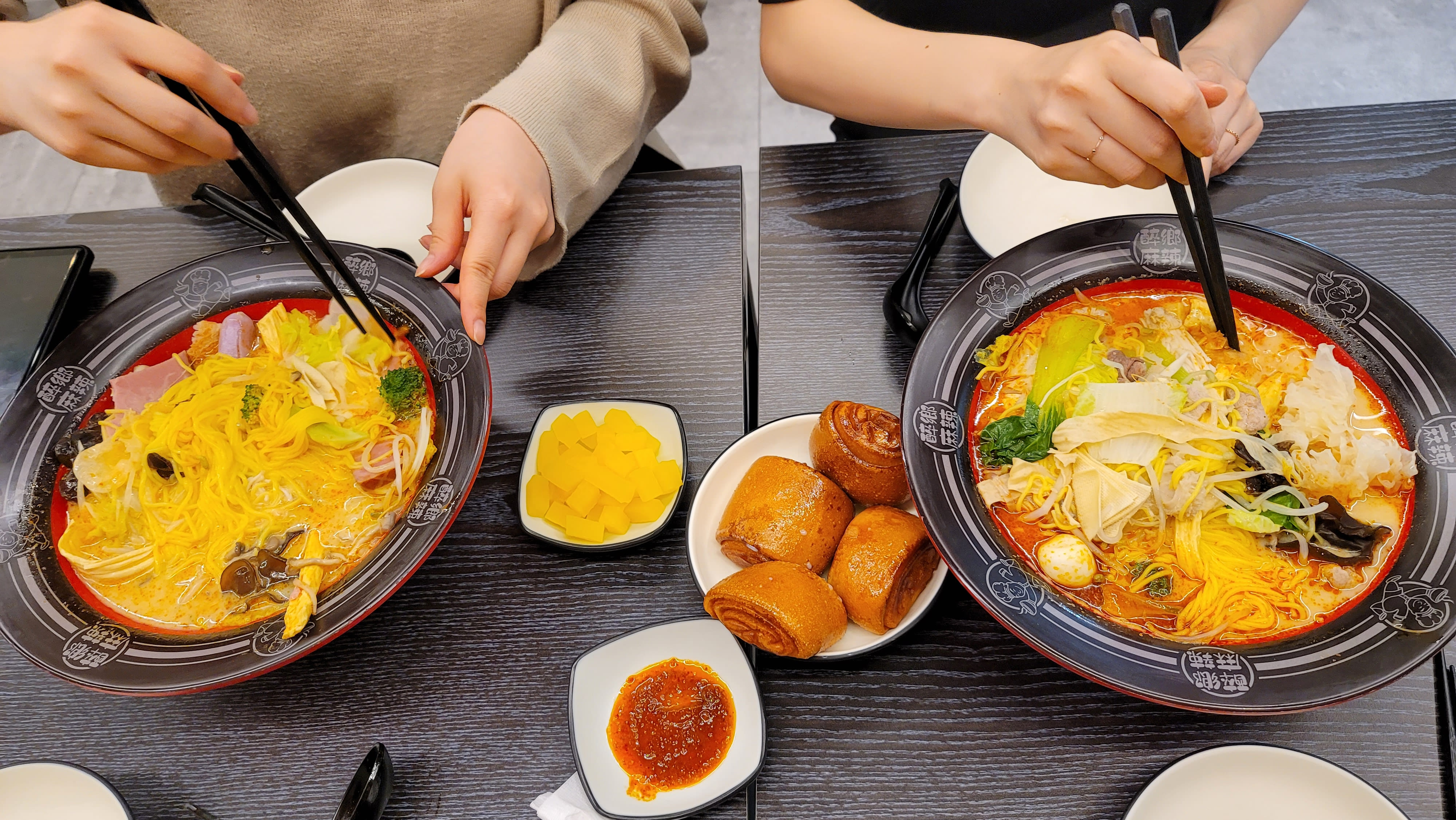 네 명이서 먹는 주문은 마라 2개와 꿔바로우 그리고 볶음밥이다. 꽃방은 서비스.