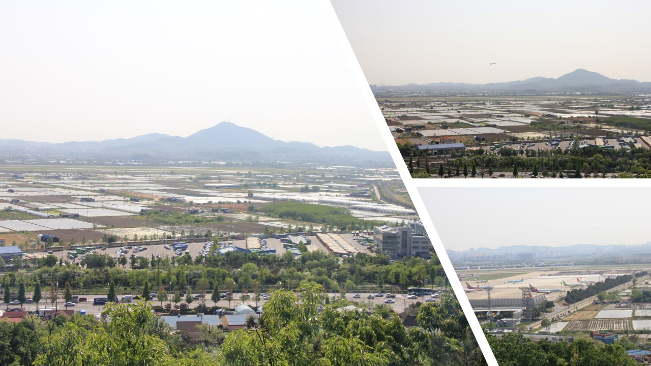 무장애 숲길의 종착점인 하늘길 전망대를 만난다. 서울시 우수 조망명소인 개화산 하늘길 전망대에서는 김포공항과 김포 뜰, 계양산, 아라뱃길을 조망할 수 있다. 잠시 있는 동안에도 비행기 여러 대가 뜨는 광경을 볼 수 있다.