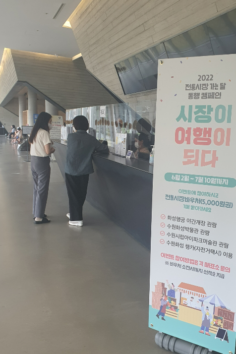 수원시립아이파크미술관 관람객은 미술관이 운영하는 SNS 채널을 추가한 후 안내데스크에서 확인받으면 된다. 전통시장 상품권은 1인당 1매씩 증정한다.