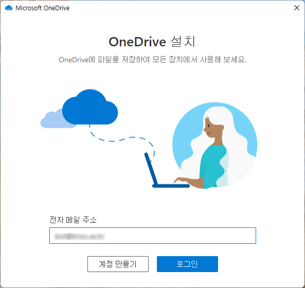 해제하고 나면 잠시 후 OneDrive설치 화면에 로그인하는 과정 화면이 나온다.