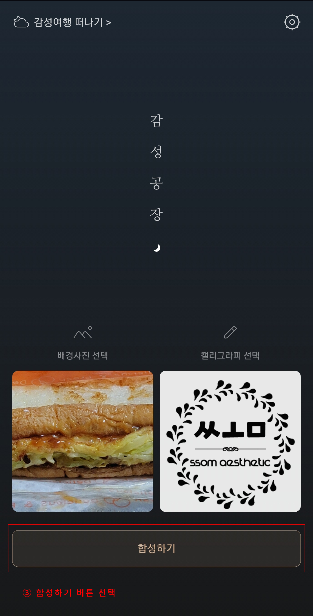 위와 같이 선택한 이미지 화면을 만나게 되면 합성하기 버튼을 선택(③ 합성하기 버튼 선택)한다.