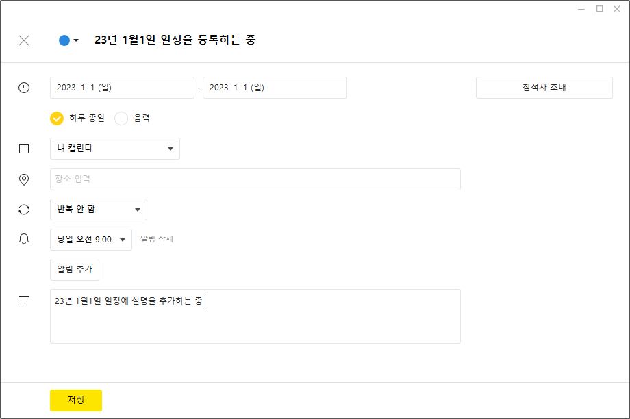 음력/반복/알림 추가/설명 추가를 설정한 후 저장버튼을 선택한다.