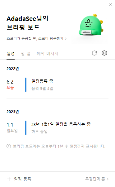 ① 일정, 할 일, 예약 메시지 탭을 눌러 내용을 확인한다.