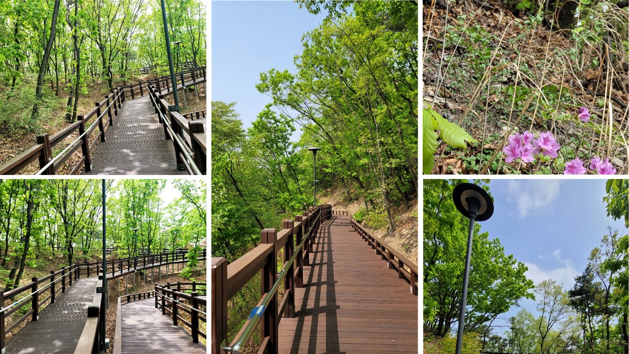 정보를 좀 더 꼼꼼히 보고 가야 했다. 무장애 숲길이라 해서 평탄한 길을 생각하고 집을 나섰다가 뒷동산을 오른다는 생각으로 아내의 휠체어를 밀고 올라갔다.