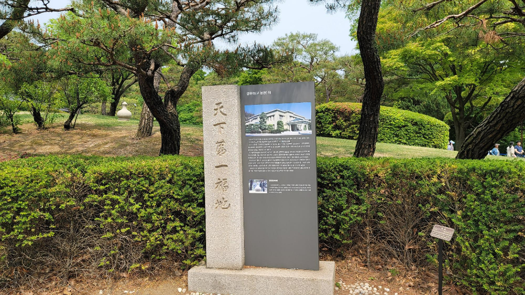 관저에서 내리막길을 따라가다 보니 경비원들의 숙소처럼 생긴 건물을 지나고 역대 대통령들의 식수를 심어 놓은 곳을 지나니 수궁터가 나온다.