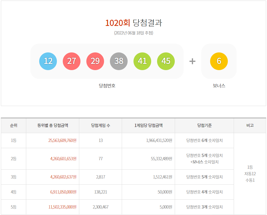2022.06.04 - [생활정보] - 로또복권 1018회 당첨번호 및 로또645 1등 당첨 판매점 지역