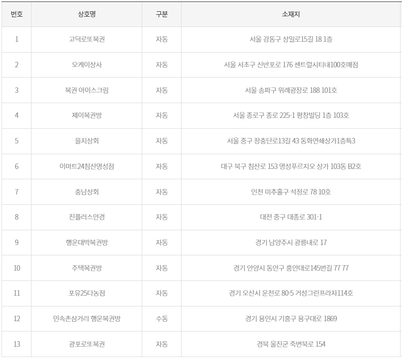 12. 민속촌삼거리 행운복권방 / 수동 / 경기 용인시 기흥구 용구대로 1869