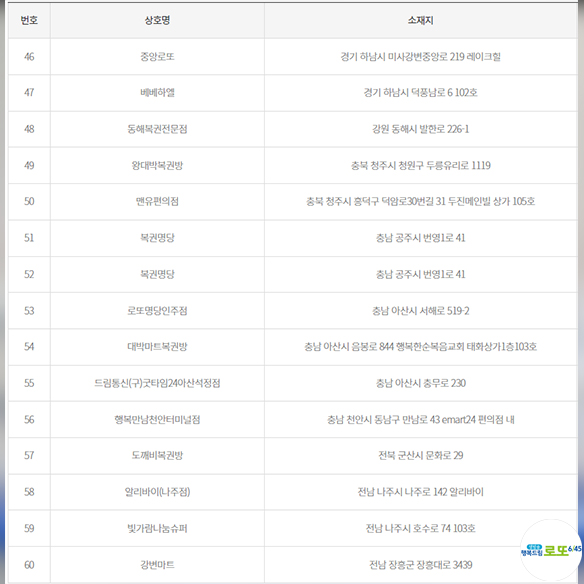44. 로또판매선부점 경기 안산시 단원구 선부광장로 27 신안골드리치빌딩 122-2호