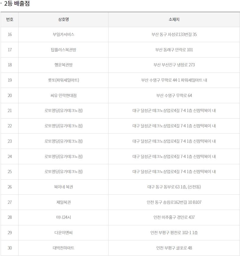 로또2등 당첨판매점 당첨지역