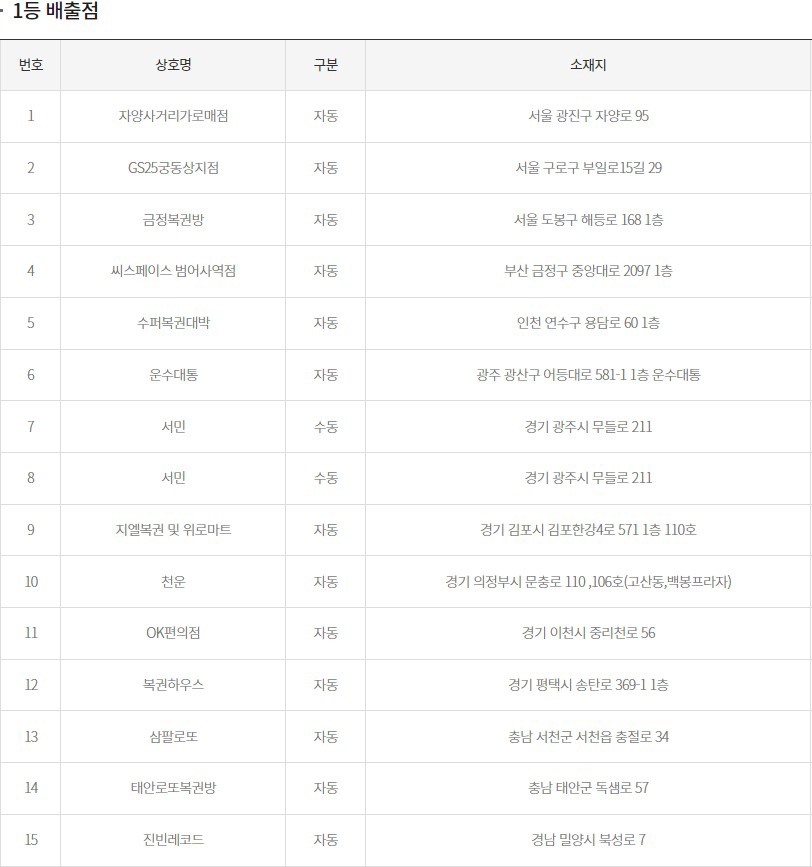 로또1등 당첨판매점 당첨지역