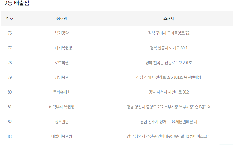 81. 벼락부자 복권방 경남 양산시 중앙로 232 북부시장 북부시장1층 B동1호