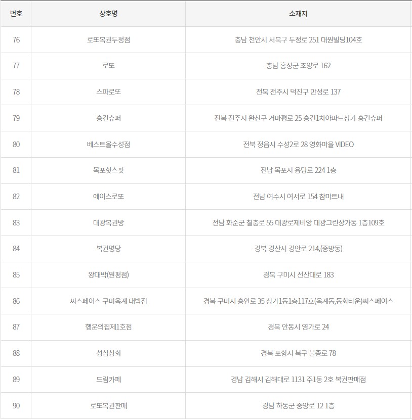 로또2등 당첨판매점 당첨지역