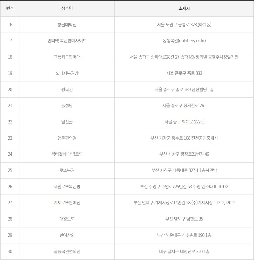 로또2등 당첨판매점 당첨지역
