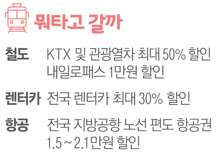 KTX 50%할인, 렌터카 최대 30% 할인, 항공권 할인